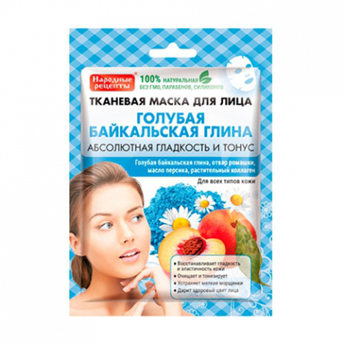 Маска Народные рецепты 25мл тканевая для лица голубая байкальская глина