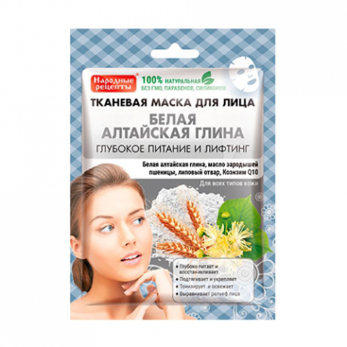 Маска Народные рецепты 25мл тканевая для лица белая алтайская глина