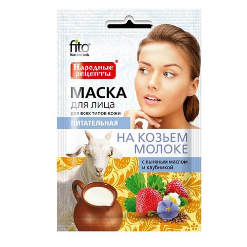 Маска для лица Народные Рецепты, питательный, на козьем молоке, 25мл