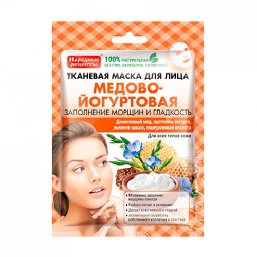 Маска Народные рецепты 25мл тканевая длялица медово-йогуртовая