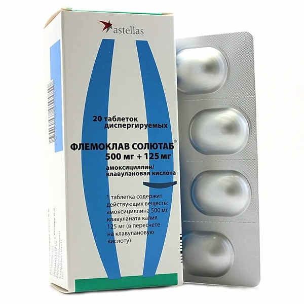Флемоклав Солютаб 500 мг/ 125 мг №20 таблетки