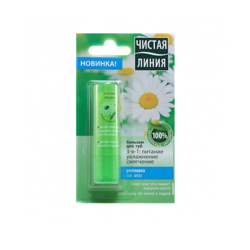 Бальзам для губ Чистая Линия 3в1 увлажняющий и смягчающий ромашка, 4гр