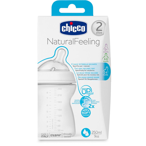 Бутылка Chicco для кормления 2м+Natural Feeling, 250 мл
