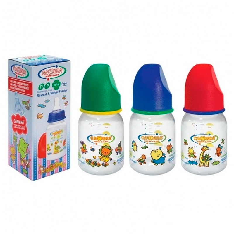 Мини-бутылочка Camera специально разработана группой экспертов для дачи ребёнку лекарств, сока, воды. изготовлена из нетоксичного высокотермоустойчивого небьющегося поликарбоната, гладкая поверхность исключает бактериальную среду, обеспечивает лёгкость мытья, выдерживает температуры до 120 градусов. Перед применением стерилизовать в течение 3-5 мин. для детей первого года жизни стерилизация кипячением обязательна! соска изготовлена из жидких силиконовых резин для пищевой продукции производства компании байер аг силопрен (Германия). сырьё нетоксично не содержит канцерогенов, нитрозамина, имеет наилучшие показатели упругости, прозрачно, не обладает запахом. материал не приобретает клейкости, не деформируется. микрокапиллярная структура обеспечивает контролируемую подачу молока сосущему малышу, предотвращая заглатывание воздуха.