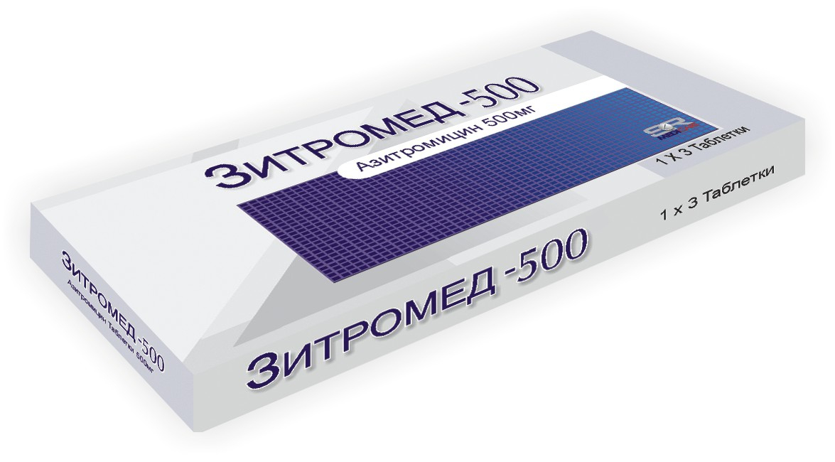 Зитромед-500 , 3 таблетки упакованы в блистер. 1 блистер упакован в картонную коробку.