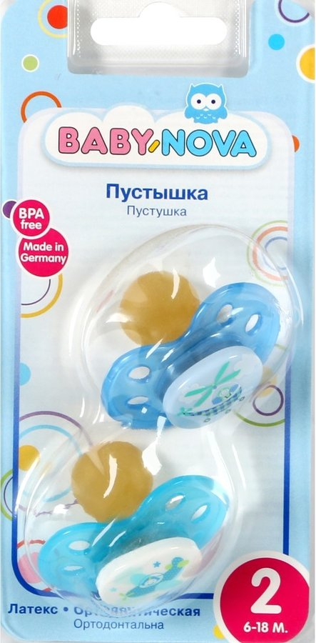 Пустышка "Baby Nova" круглой формы с объединенным диском. Особенности пустышки: специальная стоматологическая пустышка