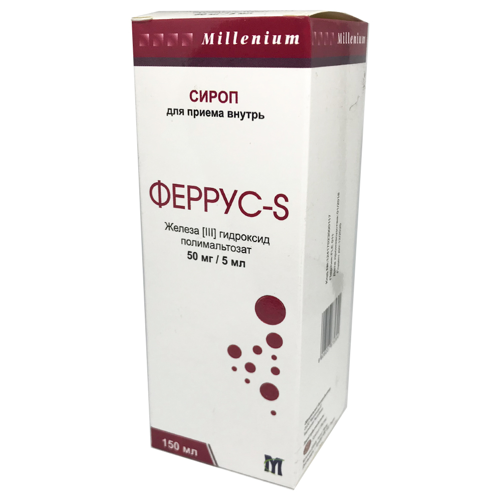 Антианемический препарат. Феррус-S содержит железо в виде полимальтозного комплекса гидроокиси железа (III). Данный макромолекулярный комплекс стабилен и не выделяет железо в виде свободных ионов в ЖКТ. Структура препарата Феррус -S сходна с естественным соединением железа - ферритином. Благодаря такому сходству, железо (III) поступает из кишечника в кровь путем активного транспорта. Всосавшееся железо связывается с ферритином и хранится в организме, преимущественно в печени. Затем в костном мозге оно включается в состав гемоглобина. Железо, входящее в состав полимальтозного комплекса гидроокиси железа (III), не обладает прооксидантными свойствами, в отличие от простых солей железа. Существует корреляция между выраженностью дефицита железа и уровнем его всасывания (чем больше выраженность дефицита железа, тем лучше всасывание). Наиболее активный процесс всасывания происходит в двенадцатиперстной и тонкой кишке.