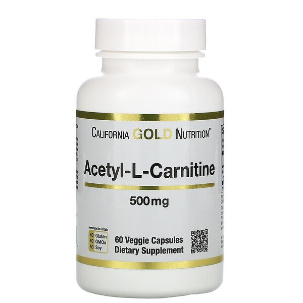 California Gold Nutrition, ацетил-L-карнитин, 500 мг, 60 растительных капсул