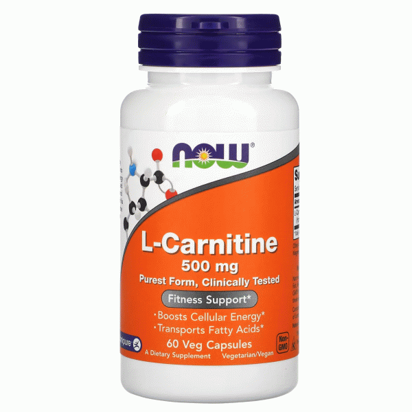 NOW Foods, L-карнитин, 500 мг, 60 растительных капсул