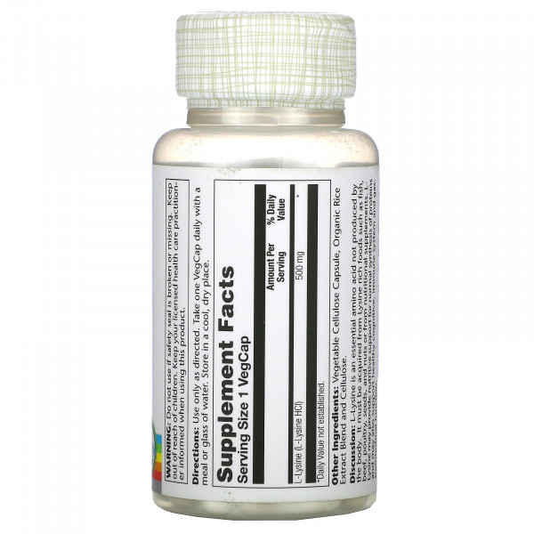Solaray, L-лизин, 500 мг, 60 вегетарианских капсул