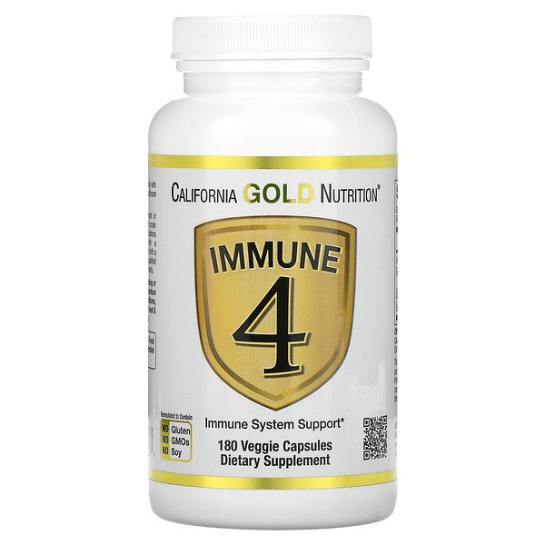 California Gold Nutrition, Immune 4, средство для укрепления иммунитета, 180 вегетарианских капсул