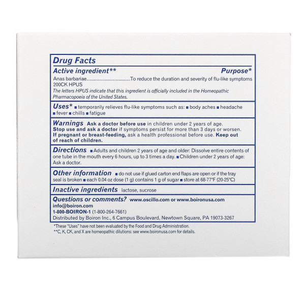 Boiron, Oscillococcinum, средство для облегчения симптомов гриппа, для особ старше 2 лет, 30 быстрорастворимых гранул по 1,13 г