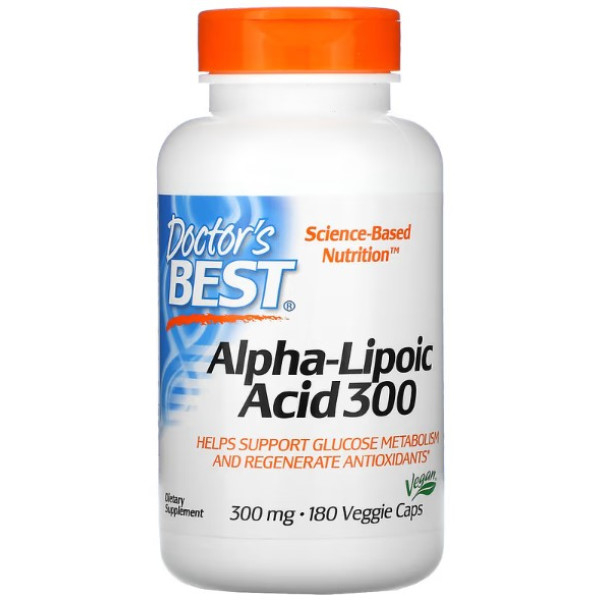 Doctor's Best, альфа-липоевая кислота, 300 мг, 180 вегетарианских капсул
