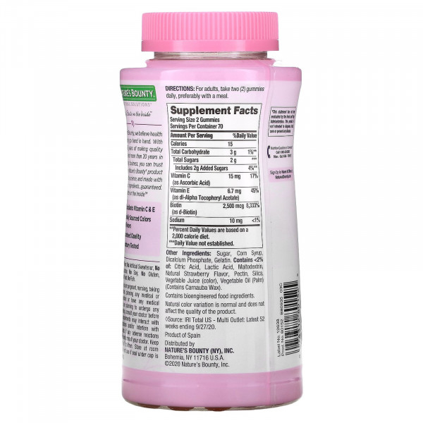 Nature's Bounty, Optimal Solutions, для волос, кожи и ногтей, с ароматом клубники, 2500 мкг, 140 жевательных конфет