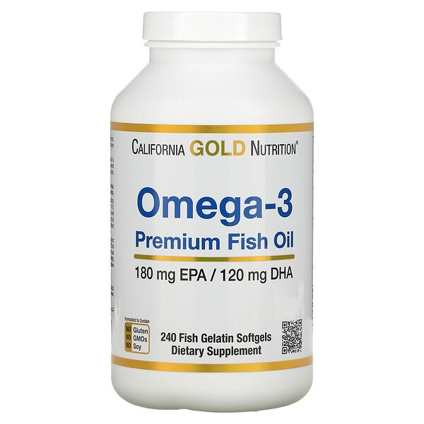 California Gold Nutrition, Омега-3, рыбий жир премиального качества, 240 рыбно-желатиновых капсул