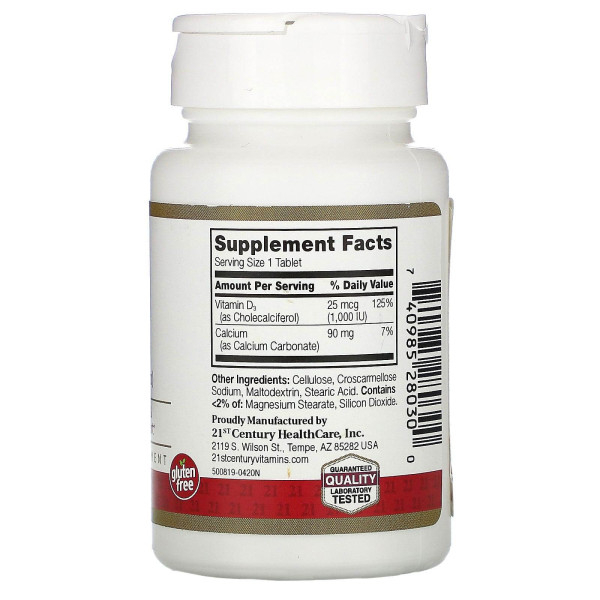 21st Century, витамин D3, 25 мкг (1000 МЕ), 60 таблеток