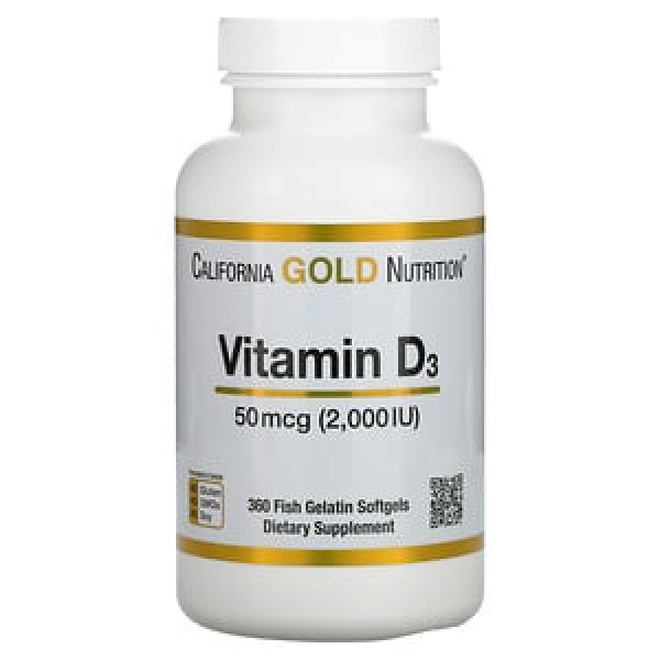 California Gold Nutrition, витамин D3, 50 мкг (2000 МЕ), 360 рыбно-желатиновых капсул
