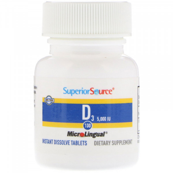 Superior Source, витамин D3 повышенной силы действия, 125 мкг (5000 МЕ), 100 быстрорастворимых таблеток MicroLingual