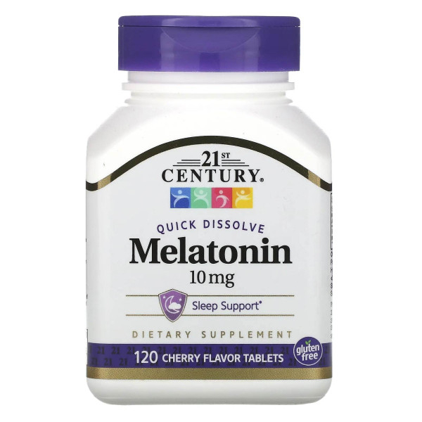 21st Century, Быстрорастворимый мелатонин, с вишневым вкусом, 10 мг, 120 таблеток