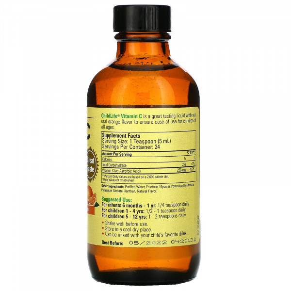 ChildLife, Essentials, витамин C в жидкой форме, натуральный апельсиновый вкус, 118,5 мл