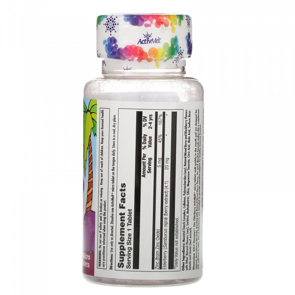 KAL, Dinosaurs, ActivMelt, растворимые таблетки с цинком и бузиной, ягодное ассорти, 90 микротаблеток