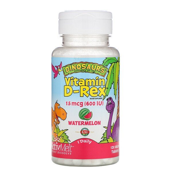 KAL, Dinosaurs, Vitamin D-Rex, со вкусом арбуза, 600 МЕ, 120 микротаблеток