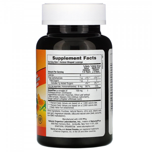 Nature's Plus, Source of Life, Animal Parade, Kid Zinc, пастилки с цинком для детей, натуральный вкус мандарина, 90 пастилок в форме животных