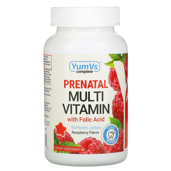 YumV's, PreNatal Multivitamin with Folic Acid, Raspberry, 90 Pectin Jellies