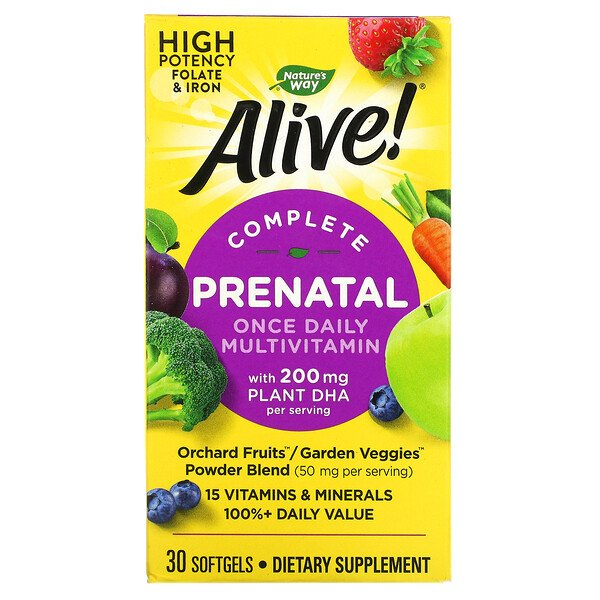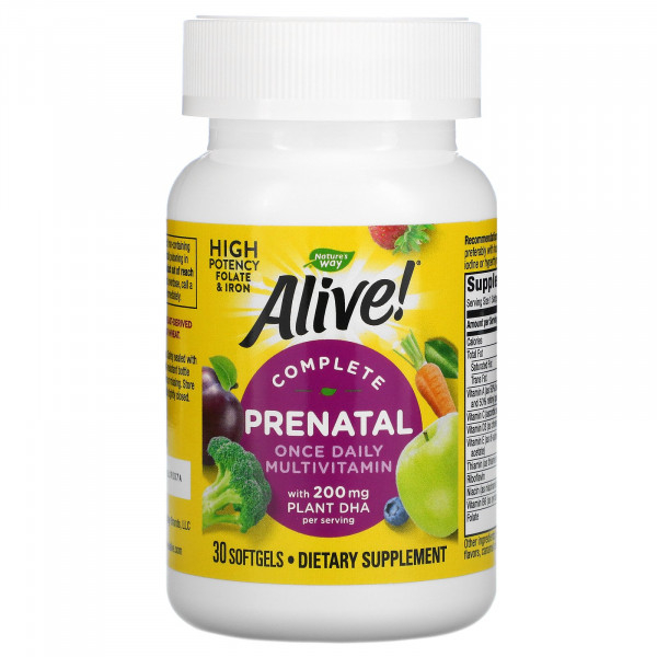 Nature's Way, Alive! пренатальный комплекс мультивитаминов, прием один раз в день, 30 капсул