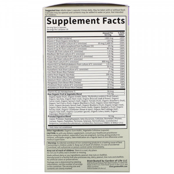 Garden of Life, Vitamin Code, RAW Prenatal, 90 вегетарианских капсул