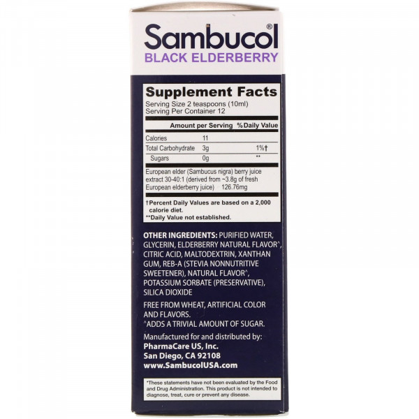 Sambucol, Сироп из черной бузины, без сахара, 120 мл