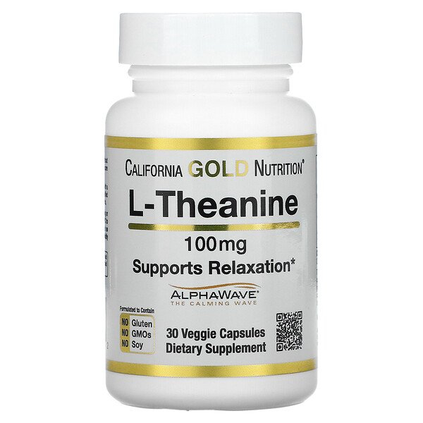 California Gold Nutrition, L-теанин, AlphaWave, поддержка расслабления, успокоение, 100 мг, 30 растительных капсул