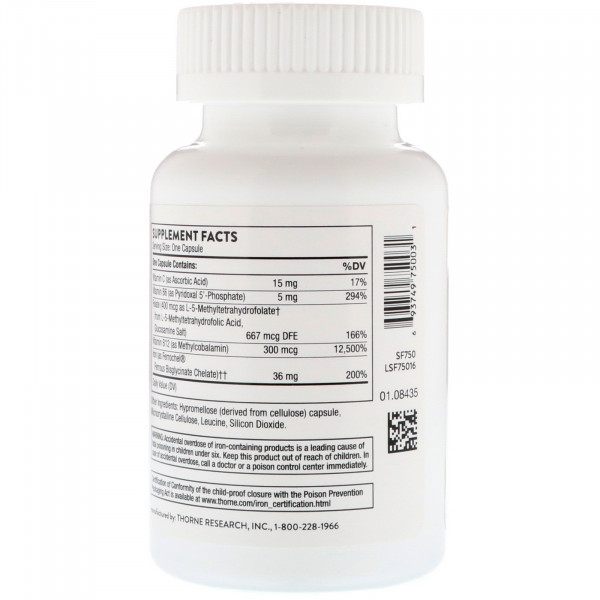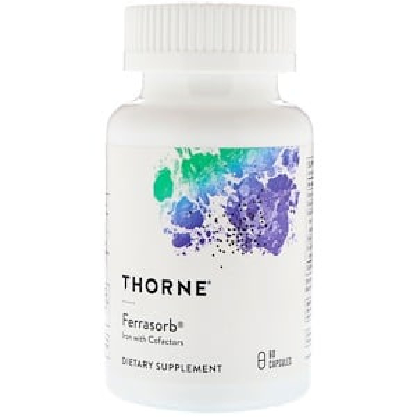 Thorne Research, Ferrasorb, железо с кофакторами, 60 капсул