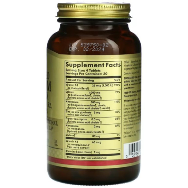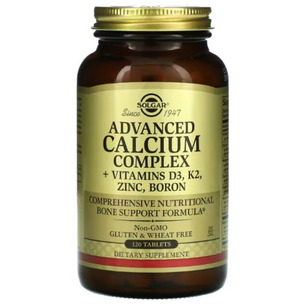 Solgar, Улучшенный кальциевый комплекс с витаминами D3, К2, цинком и бором, 120 таблеток