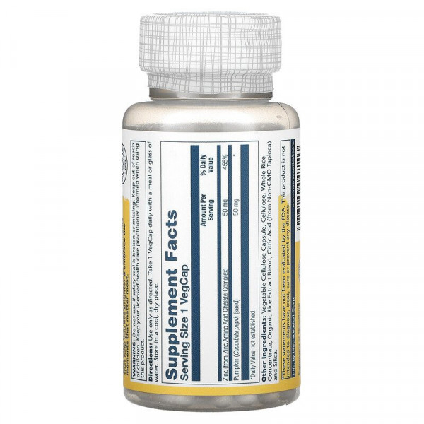 Solaray, цинк, 50 мг, 100 растительных капсул