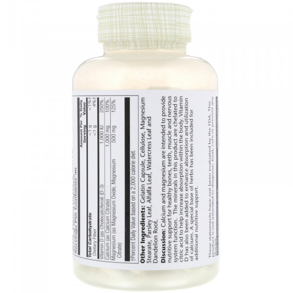 Solaray, Цитрат кальция и магния в соотношении 2:1 с добавлением витамина D-3, 180 капсул