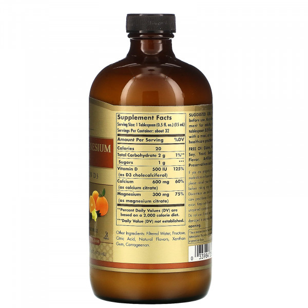 Solgar, Цитрат кальция и магния, с витамином D3, в жидкой форме, вкус натурального аапельсина, 473 мл