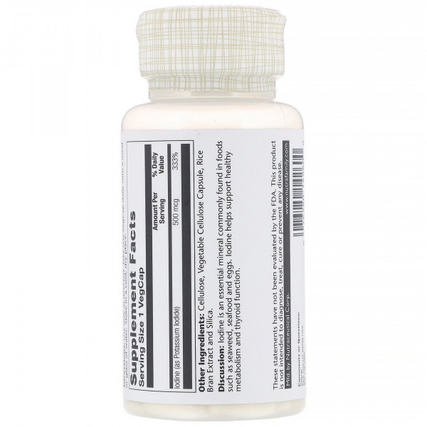 Solaray, Йод из йодида калия, 500 мкг, 30 растительных капсул