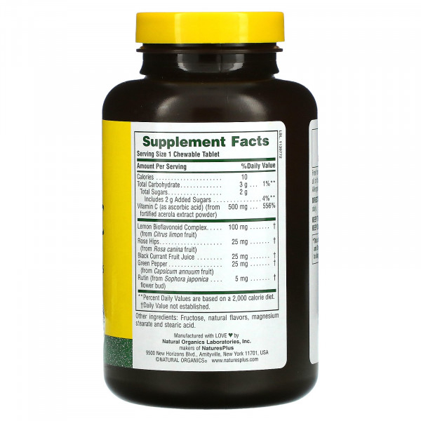 Nature's Plus, Ацерола-C в жевательной форме, витамин C с биофлавоноидами, 500 мг, 90 таблеток