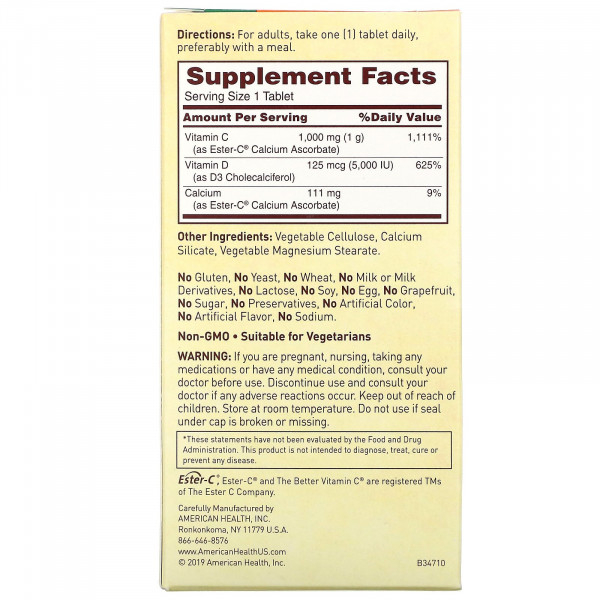 American Health, Ester-C с D3, 60 вегетарианских таблеток