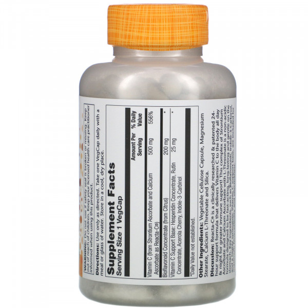 Solaray, Reacta-C, 500 мг, 180 вегетарианских капсул