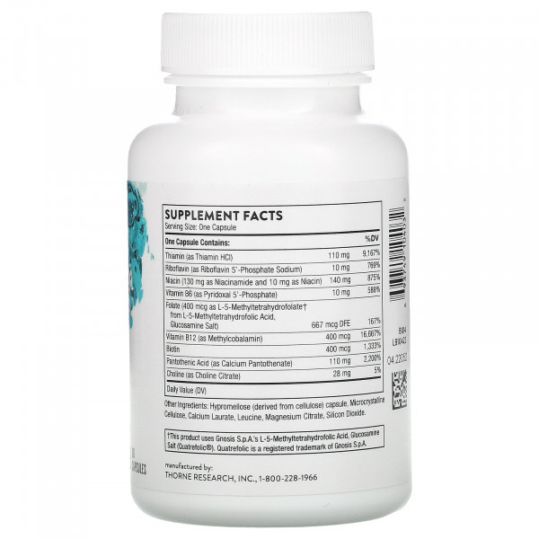Thorne Research, комплекс основных витаминов группы B, 60 капсул