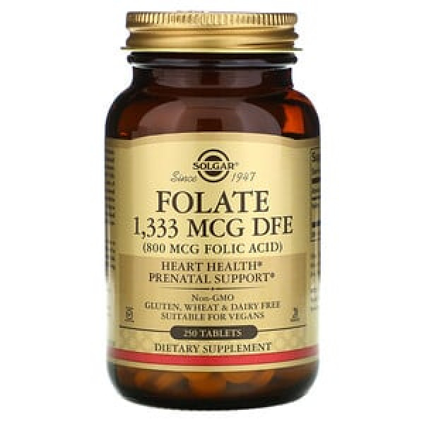 Solgar, фолиевая кислота, 1333 мкг фолиевого эквивалента, 250 таблеток