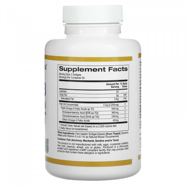 California Gold Nutrition, омега-3, рыбий жир премиального качества, 100 капсул из рыбьего желатина