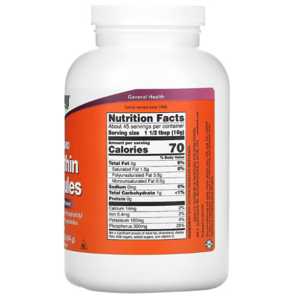 NOW Foods, лецитин в гранулах, без ГМО, 454 г