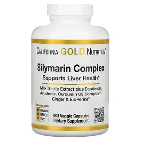 California Gold Nutrition, силимариновый комплекс, для здоровья печени, расторопша, куркумин, артишок, одуванчик, имбирь и черный перец, 360 растительных капсул