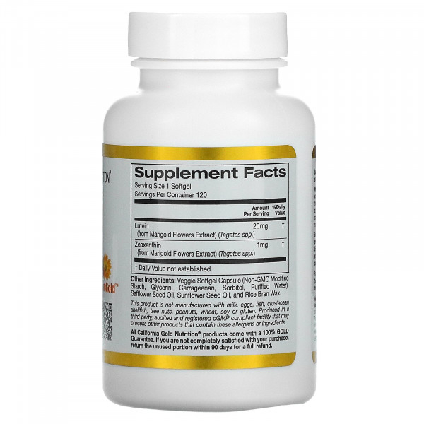 California Gold Nutrition, лютеин с зеаксантином, 20 мг, 120 растительных мягких таблеток