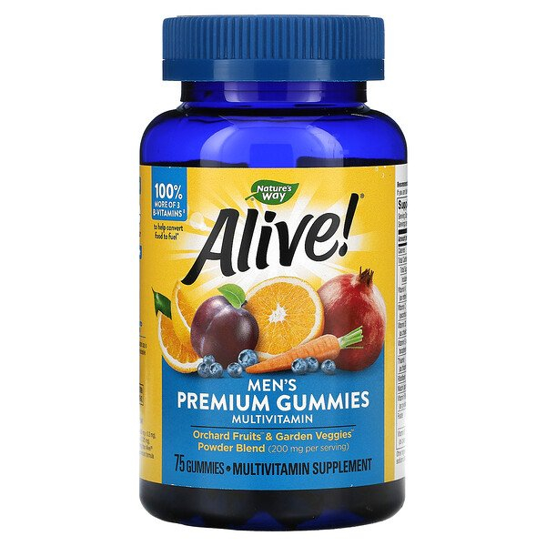 Nature's Way, Alive! полный комплекс мультивитаминов премиального качества для мужчин, со вкусом апельсина, винограда и вишни, 75 жевательных конфет