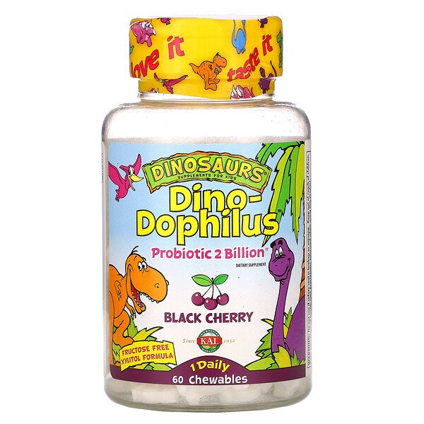 KAL, Dinosaurs, Dino-Dophilus, пробиотики со вкусом черешни, 60 жевательных таблеток