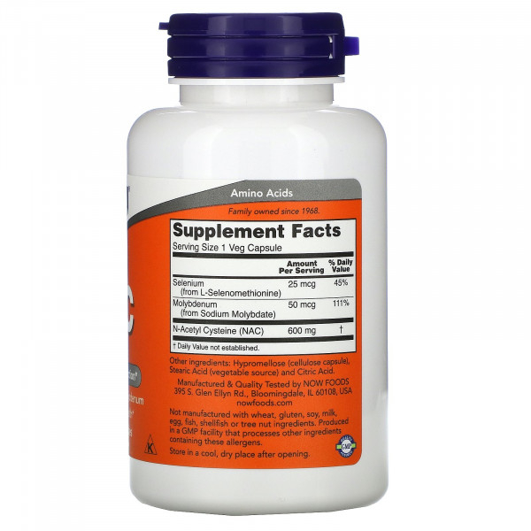 Now Foods, NAC (N-ацетилцистеин), 600 мг, 100 растительных капсул